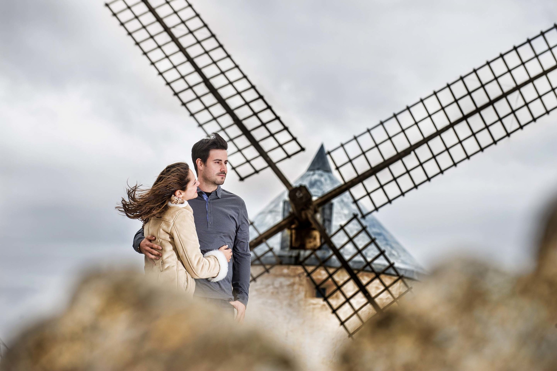 Windmill Engagement Shoot with Natural Backdrop Toledo, Spain
