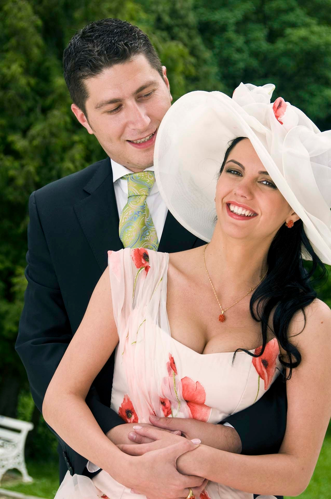 Elegant Wedding Couple Portrait with Garden Backdrop